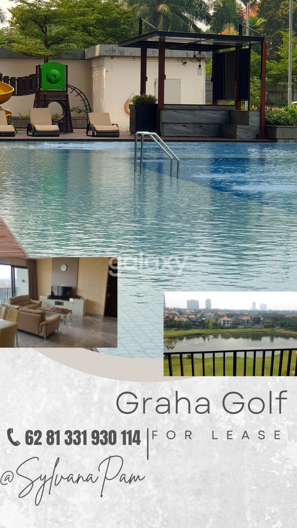 *Graha Golf Apartment* *For LEASE* Tower ALEXA 4+1 bedroom Luas SG 158 m2 2+1 bathroom Long balcony Luxury FURNISHED Golf VIEW Harga 275 juta/year nego!! Hubungi: SYLVANA GALAXY CITRALAND 081331930114