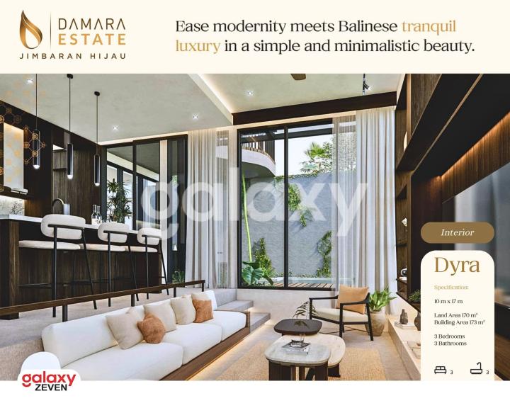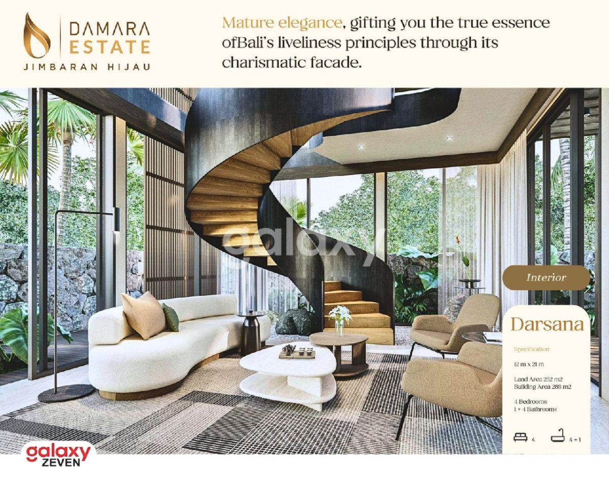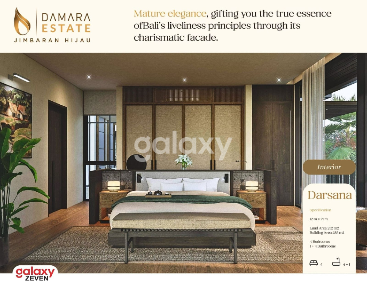 🌿 *DAMARA ESTATE - JIMBARAN, BALI* 🌿 A Resort-Style Private Residence in the Heart of Jimbaran Setelah sukses memasarkan Damara Village, Greenwoods Groups dan Jimbaran Hijau kembali menghadirkan *DAMARA ESTATE* sebagai _pilihan terbaik untuk Anda yang mendambakan hunian dengan keindahan arsitektur yang membaur dengan alam hijau Jimbaran dan investasi bernilai tinggi._ Damara Estate adalah surga dunia yang cocok untuk tempat tinggal yang dibangun untuk menciptakan kedamaian dan ketenangan untuk para penghuninya. Kekayaan alam Jimbaran membuat Anda merasakan nuansa resort dengan ruang hijau yang rimbun mulai dari pintu masuk gerbang serta memberikan sensasi kenyamanan dalam setiap langkah kehidupan Anda. Material bangunan Damara Estate dipilih dengan cermat dari sumber daya lokal Bali untuk mewujudkan warisan lingkungan pulau yang indah. Damara ESTATE menghadirkan 3 Tipe rumah Modern dengan sentuhan lokal Bali di mana setiap rumah dilengkapi dengan: ✓ Interior & Perabot mewah ✓ Elektronik ✓ Kolam renang pribadi yang menyejukkan. Pastikan Anda menjadi salah satu dari pemilik dari hunian eksklusif Damara Estate Jimbaran Hijau. Hubungi: MARSCA - 081230333978 Galaxy Zeven 3 Tipe Hunian Resort Damara Estate: 1) 🌿 DYRA - Land 170 m² ( 10x17 ), Building 173 m² - 3 Bedrooms, 3 Bathrooms - 2 Carports - Electricity 7.700w - Water PDAM, Deep Well - SHGB - Rp 6,865,000,000,- 2) 🌿 DINARA - Land 231 m² ( 11x21 ), Building 226 m² - 4 Bedrooms, 3+1 Bathrooms - 2 Carports - Electricity 7.700w - Water PDAM, Deep Well - SHGB - Rp 9,788,800,000,- 3) 🌿 DARSANA - Land 252 m² ( 12x21 ), Building 288 m² - 4 Bedrooms, 4+1 Bathrooms, Plus Attic - 2 Carports - Electricity 7.700w - Water PDAM, Deep Well - SHGB - Rp 11,849,600,000,- Fasilitas Damara Estate ✓ Double facade concept ✓ Pocket garden ✓ Jogging path ✓ Colabo Cafe ✓ Locca Sea House