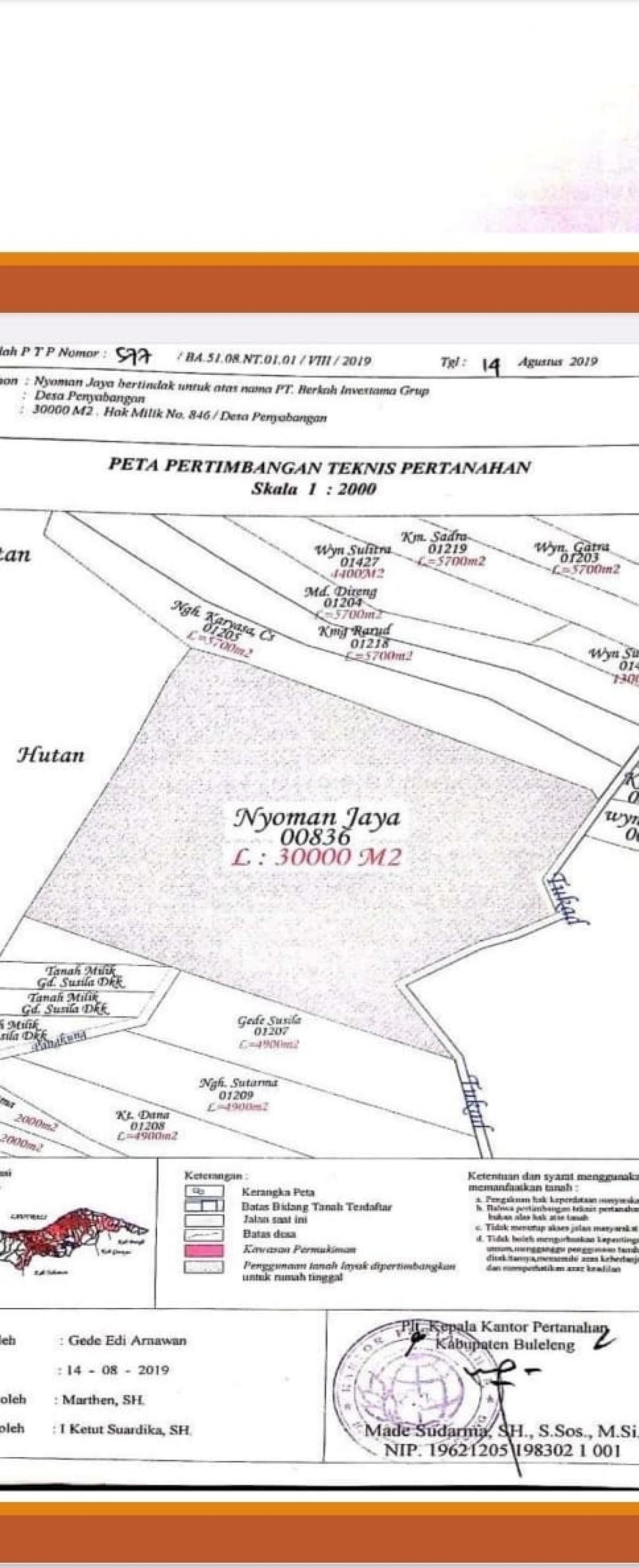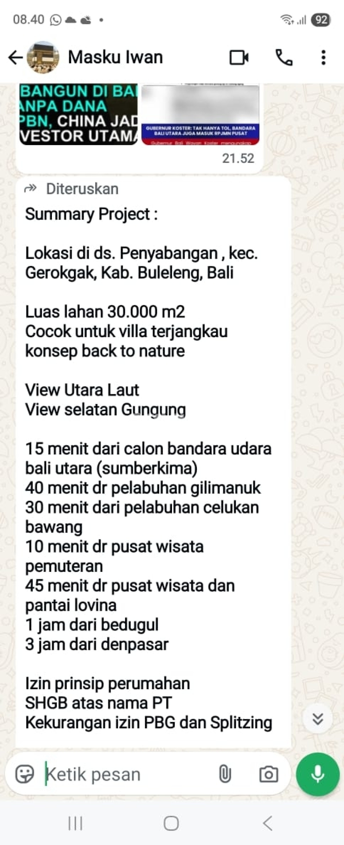 30 ribu m² Lokasi Bali Harga permeter Lokasi akan di bangun bandara internasional Harga permeter 533 ribu Surat HGB