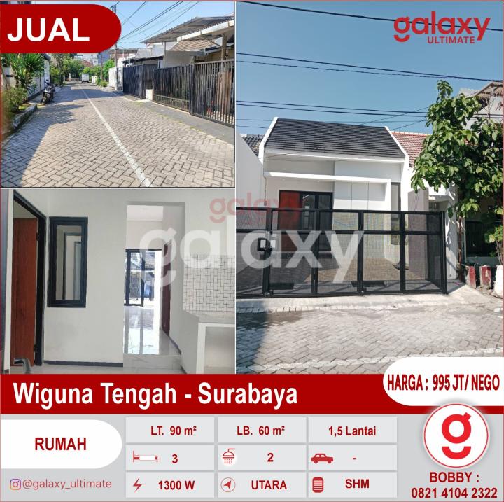 Di Jual Rumah Baru Gress di Wiguna Tengah - Surabaya dekat kampus UPN, depot Slamet & Tol Tambak Sumur Hanya 1 unit Row jalan 2 mobil losss Rumah 1,5 Lantai Hadap utara Dimensi 6x15 Luas Tanah : 90 m² Luas Bangunan : 60 m² Kamar Tidur : 3 Kamar Mandi : 2 Listrik 1300 watt SHM + IMB + PBB READY FREE PAGAR DEPAN, FREE TAMAN Perum BEBAS BANJIR POLA BAYAR CASH KERAS Open KPR All BANK AKSES 2 mobil jalan paving HARGA 995jt/ NEGO!! More Info : Bobby Galaxy Ultimate