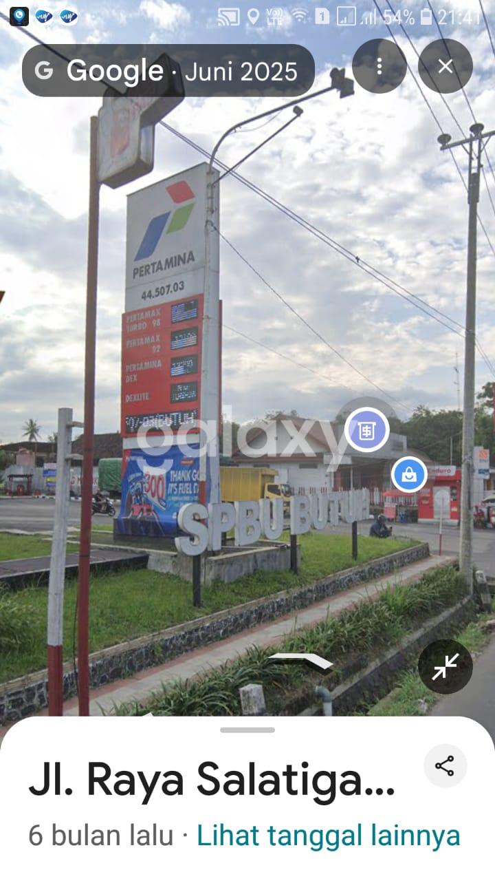 SPBU Pertamina Masih Aktif di Jl. Raya Salatiga-Solo, Tengaran, Semarang Luas Tanah: 6500m2 Kamar Mandi : 2 - 4 Canopi - 4 Dispense Tatsuno - 5 Tangki Pendem @30Ton - 1 Tangki Pendem 15 Ton - Ada ATM, Supermarket, Toilet, Mushala - 1 Gedung 2 Lantai (kantor+admind)