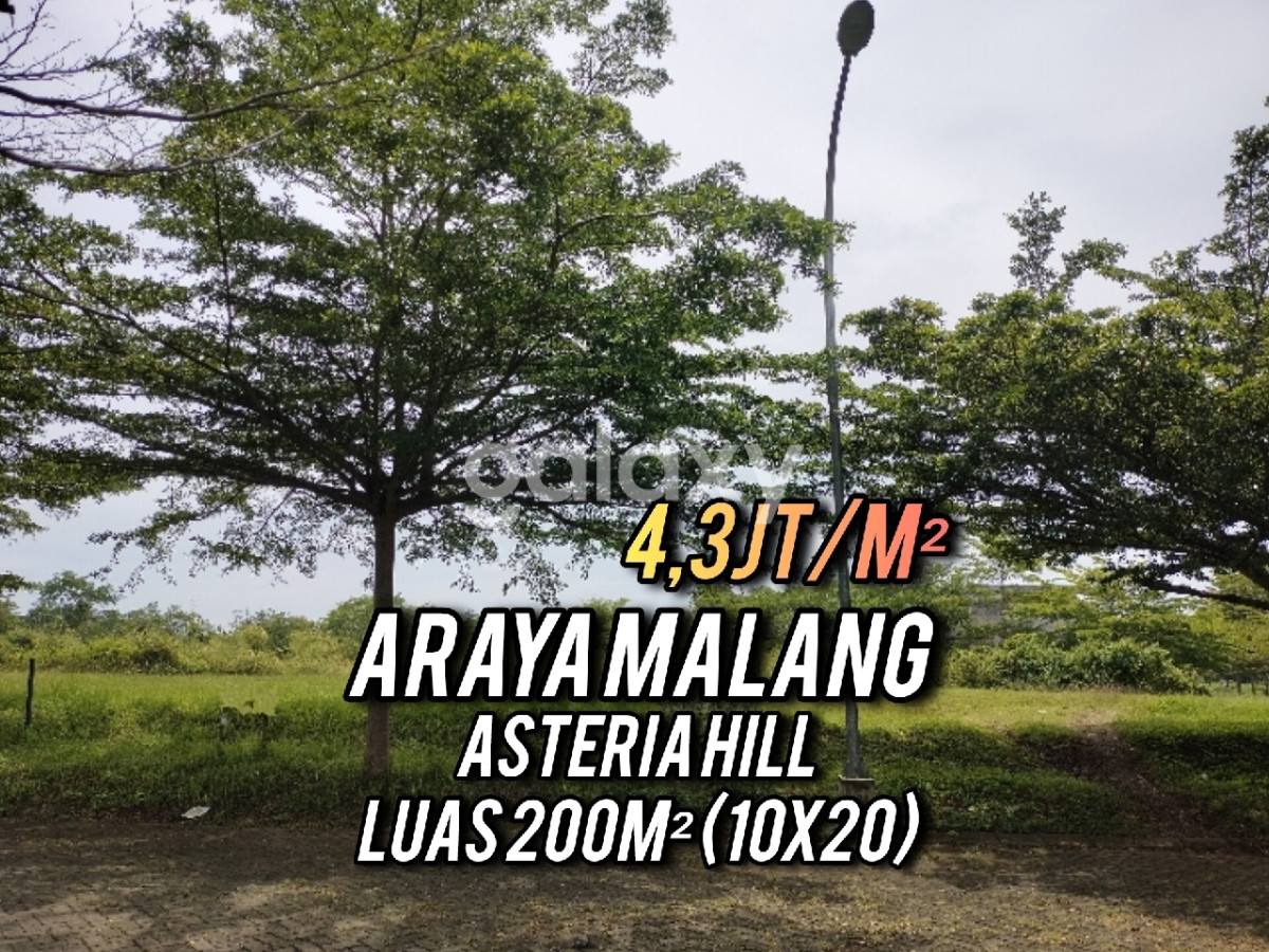 Dijual tanah kavling siap bangun di Araya Malang Asteria Hill, dekat Binus. Kawasan perumahan yang nyaman dan dilengkapi fasilitas lengkap. - Luas tanah: 200 m² - Sertifikat: PPJB/SPJB - Kondisi: Bagus - Fasilitas perumahan: Keamanan, Jogging Track, Taman, Kolam Renang - Harga: Rp 4.250.000/meter² Sudah Termasuk Biaya Peralihan Segera miliki hunian impian Anda di lokasi strategis dengan lingkungan yang asri dan nyaman. Jangan lewatkan kesempatan untuk berinvestasi di tanah yang siap dibangun ini.