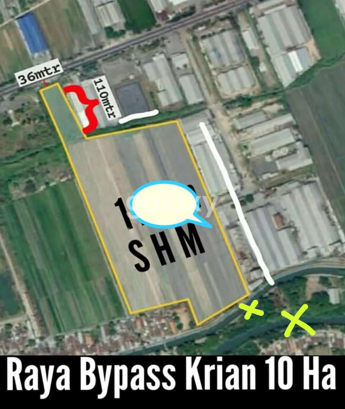 TANAH ZONA INDUSTRI DI RAYA BYPASS KRIAN - LT 10 ha - Lebar kurleb 100m - 0 Raya Bypass Krian - SHM Harga 2,5jt/m - 250 M